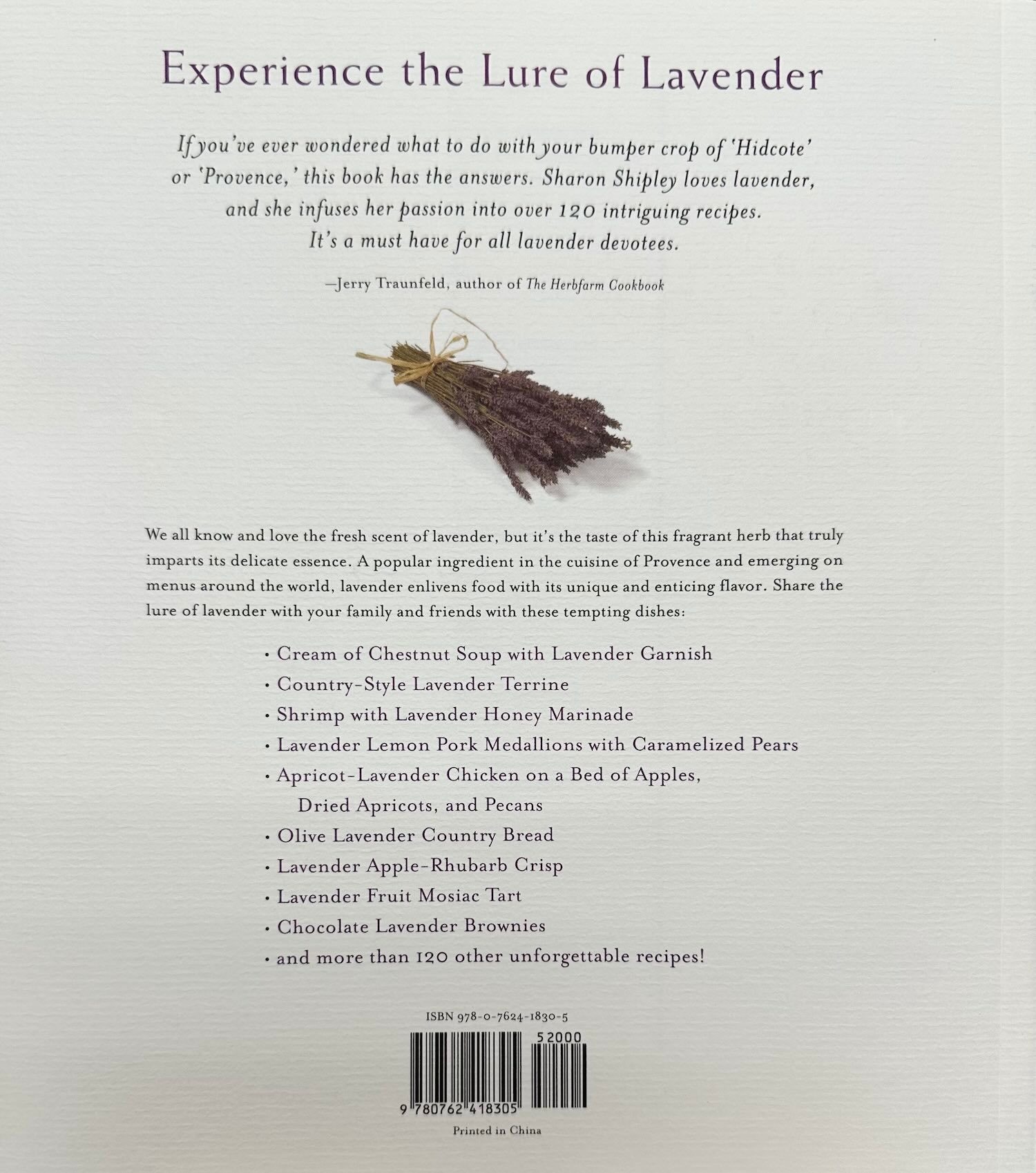 This book covers the full gamut of dishes, from savory to sweet, including Lavender Lemon Pork Medallions, Olive Lavender Country Bread and Chocolate Lavender Brownies. Be sure to buy some of our culinary lavender, including the Provence variety, which is exactly the type of lavender this cookbook recommends for the most flavorful dishes.