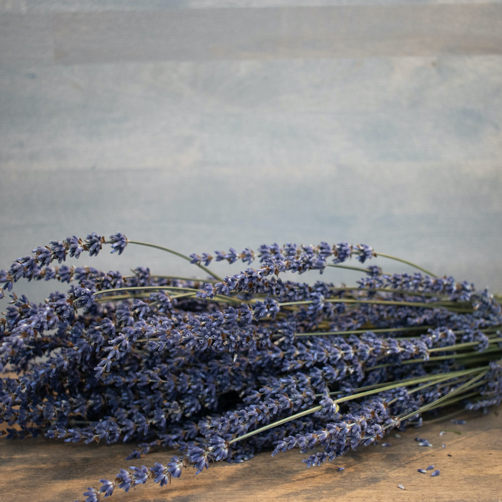 Dried, long-stem bundles of lavender grown on Whidbey Island without pesticides from the most recent growing season.