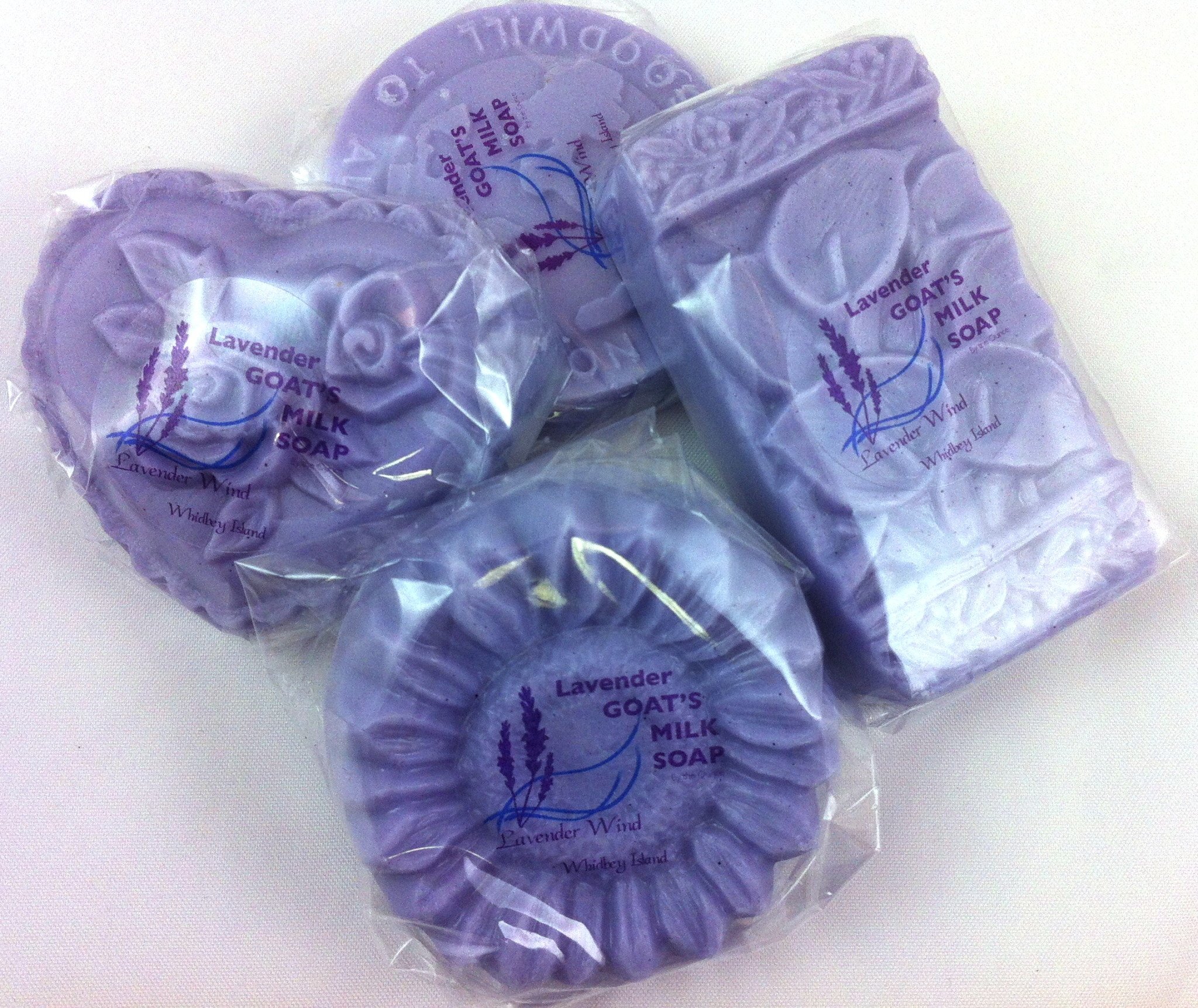 Our soaps come in various shapes and sizes and have a light lavender scent from pure essential oil; we don't use any synthetic fragrances in our goat milk bar soaps.
