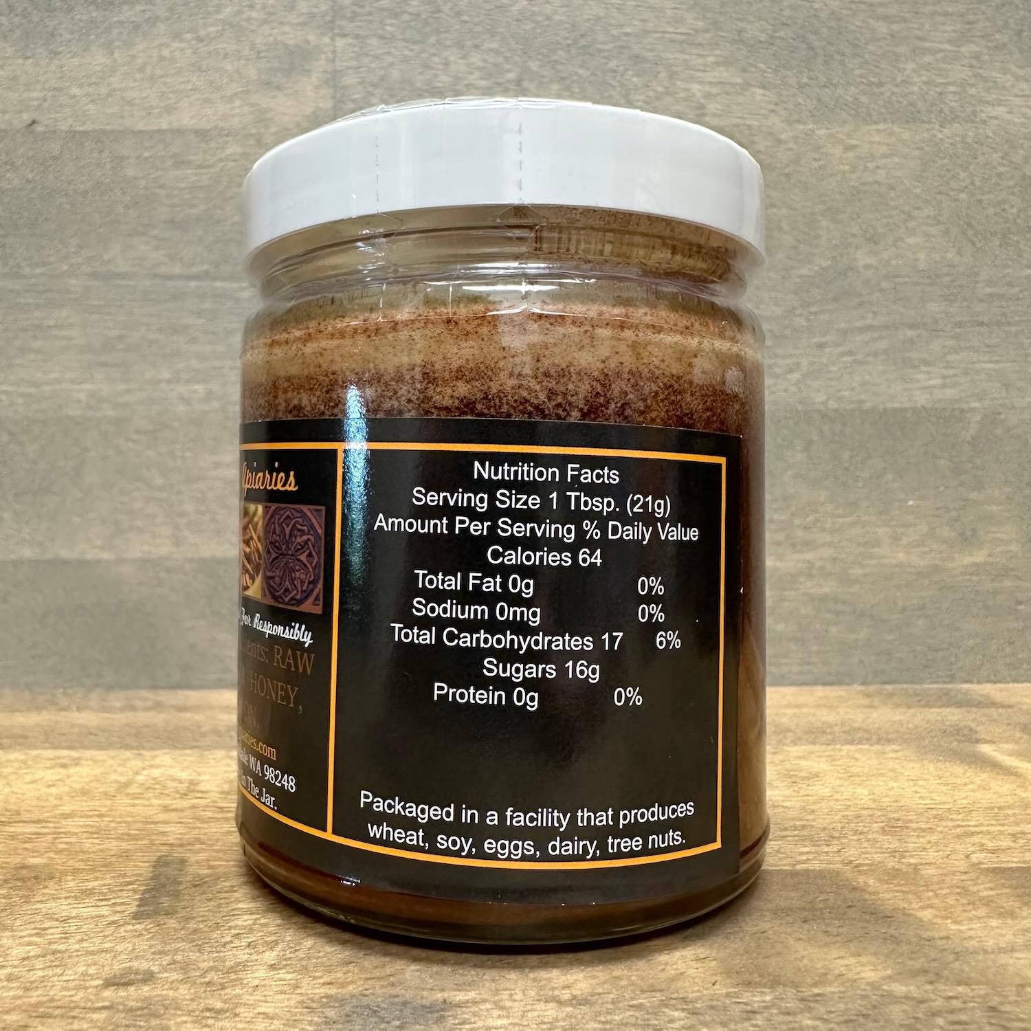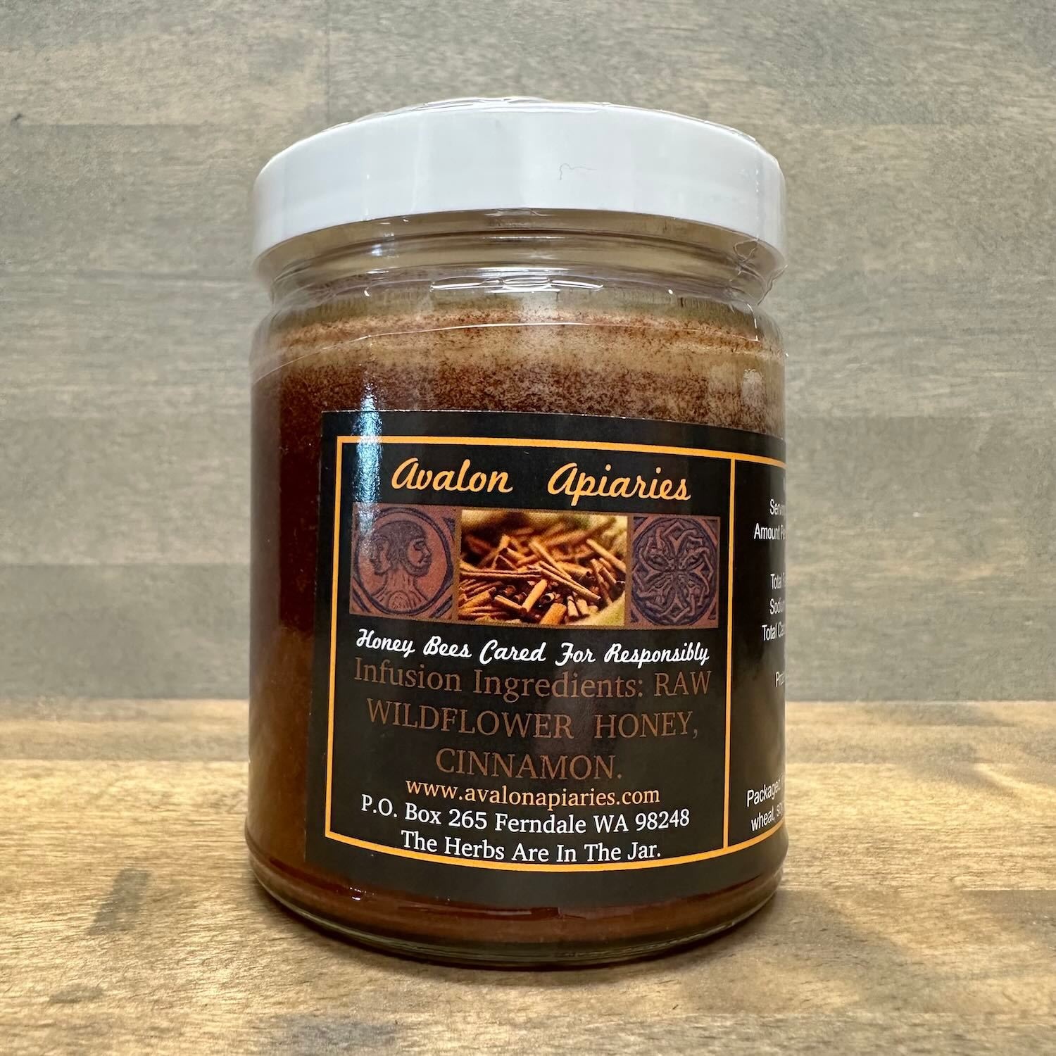 Raw Cinnamon Infused Wildflower Honey hand-produced from Avalon Apiaries harvested from honeybee hives in the forests and fields of North Western Washington.