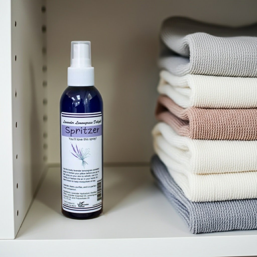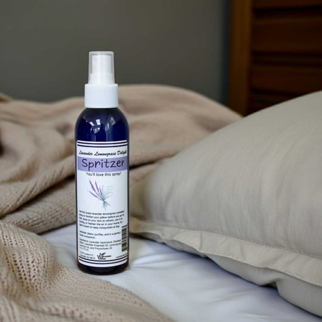 A heavenly lavender and lemongrass scent for your room and linens using locally sourced hydrosol and essential oils in a convenient spray bottle.