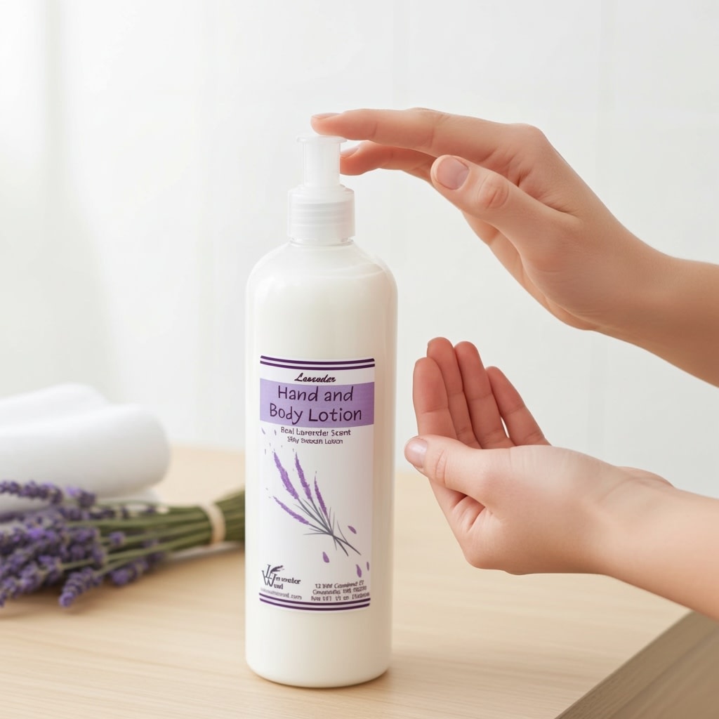 Each batch is blended using lavender essential oil distilled from locally grown lavender, selected for its clean, familiar lavender aroma. This locally sourced ingredient is central to the character and consistency of our lotion.