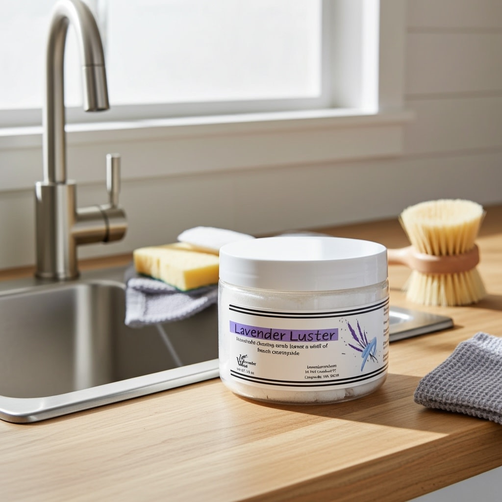 A gently abrasive lightly scented household cleaning scrub great for sinks, tubs, counters, and tiles. Easy on you, your house, your pets, and your environment.
