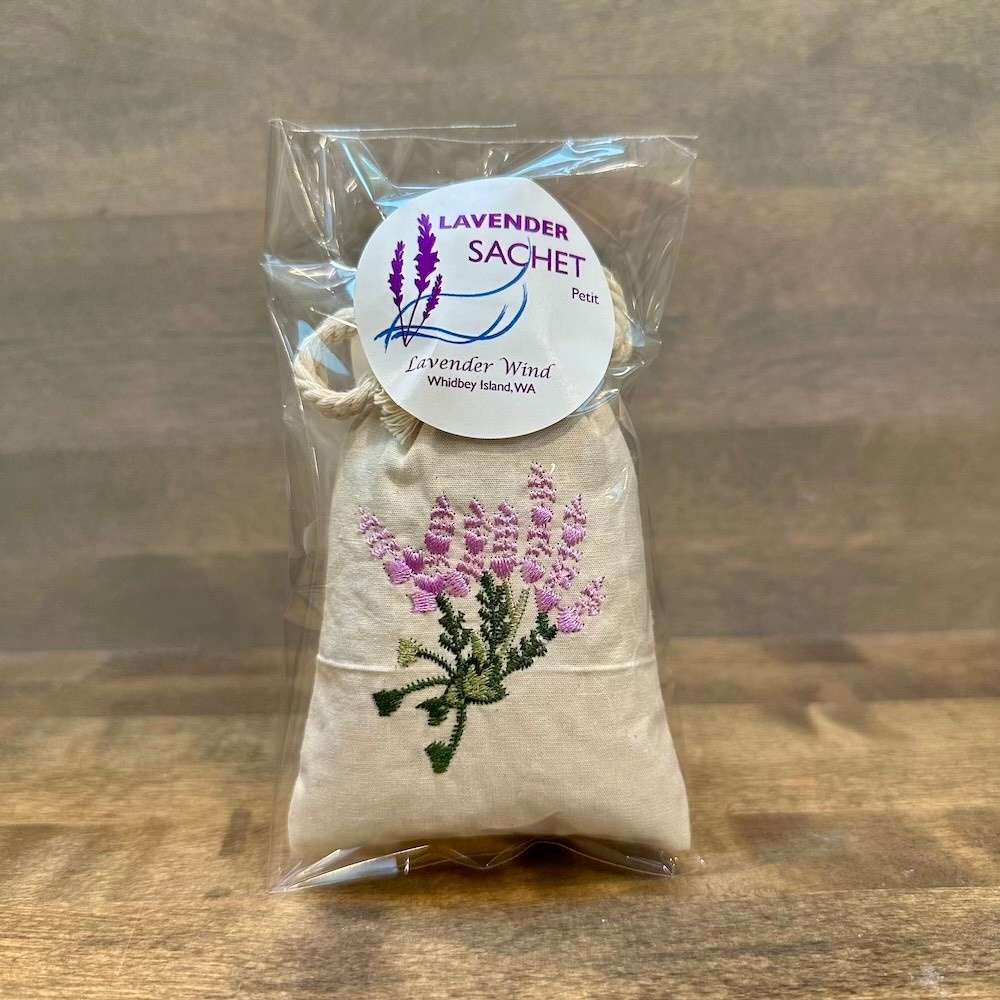 A sweet embroidered lavender sachet filled with our fragrant lavender buds grown without pesticides on Whidbey Island.