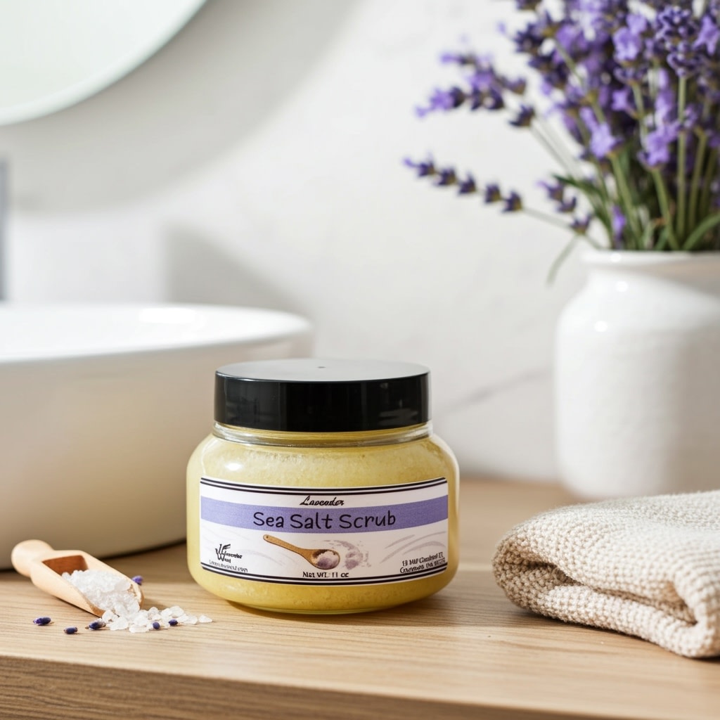 Handmade with all-natural ingredients, our Lavender Sea Salt Scrub gently exfoliates while deeply nourishing the skin. Packed in an 11 oz. plastic jar, this refreshing scrub leaves skin smooth, soft, and lightly scented with calming lavender.