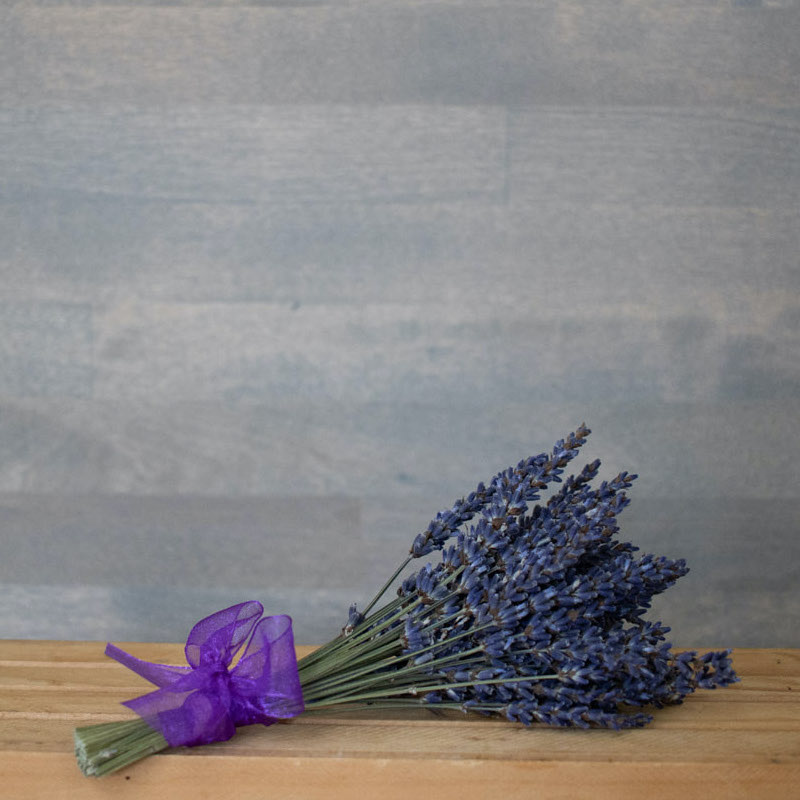 A bundle of dried lavender from this year's harvest at Western Sun Lavender Farm on Whidbey Island. Bundled, tied with a purple bow, and ready to use for decorative purposes.